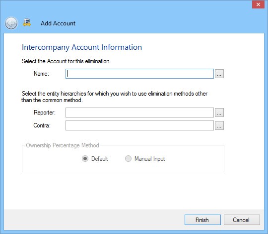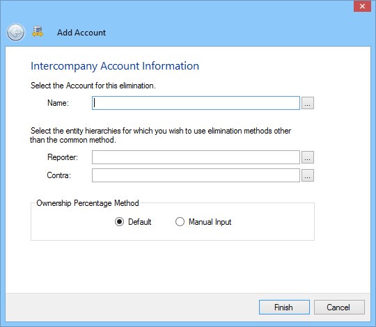 - Click Add to define an account for the elimination. The Add Account dialog opens.