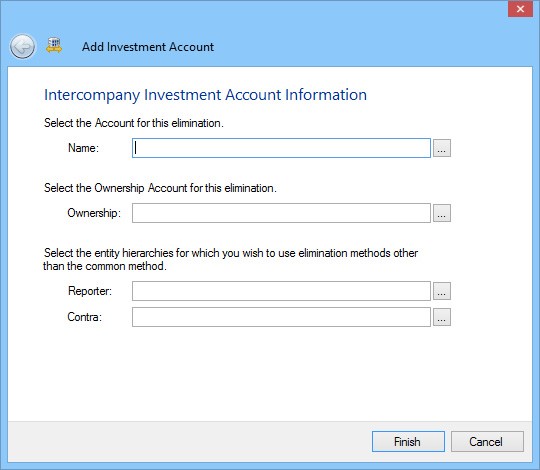 - Click Add to define an account for the elimination. The Add Investment Account dialog opens.