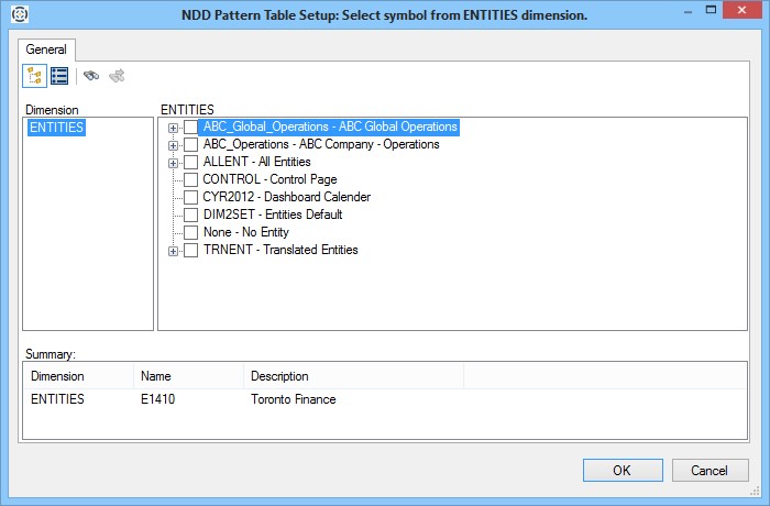 Note: The data query defaults to the user attribute values found in the UGPD[DimensionNumber]QueryDefault attributes. In addition, if you have access to only one symbol in a dimension, the selection defaults to that symbol.