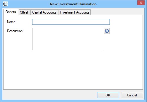 Right-click anywhere in the Contents window and select New Investment Elimination. The New Investment Elimination dialog opens.