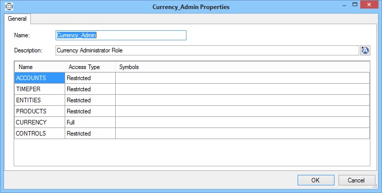 - Make the necessary changes to the properties of the symbol access role and click OK. Your changes to the role are saved.