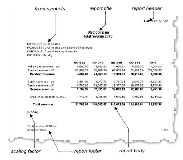 The following illustration shows a report with its main features.