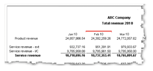 For example, in the following report, the cell containing total revenue for the third quarter of 2003 stands out from the rest of the report.