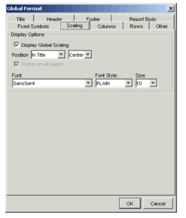 - In the report view, choose Format > Edit Global Format. The Global Format dialog appears, with the Title tab in view.