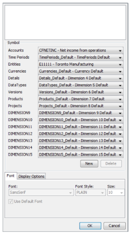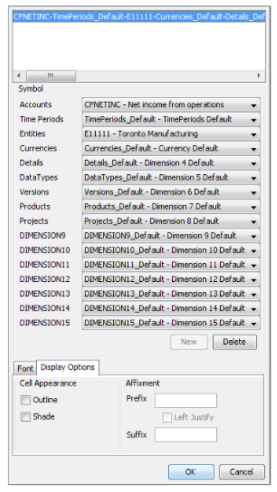 - In the Symbol section, select a symbol for each dimension in the database, to specify the cell’s coordinates.