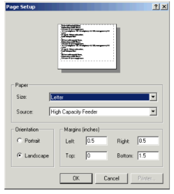 - Choose File > Page Setup. The Page Setup dialog appears.
