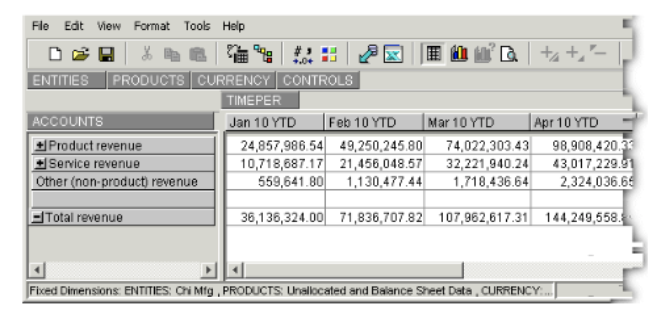 Cannot select symbols. Can expand or collapse the hierarchy and see data for any symbol in the hierarchy below the default symbols. |