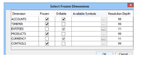 Field Description Frozen Select this field to specify that the dimension is frozen. Drillable If Frozen is cleared for this dimension, this field is automatically selected and cannot be cleared.