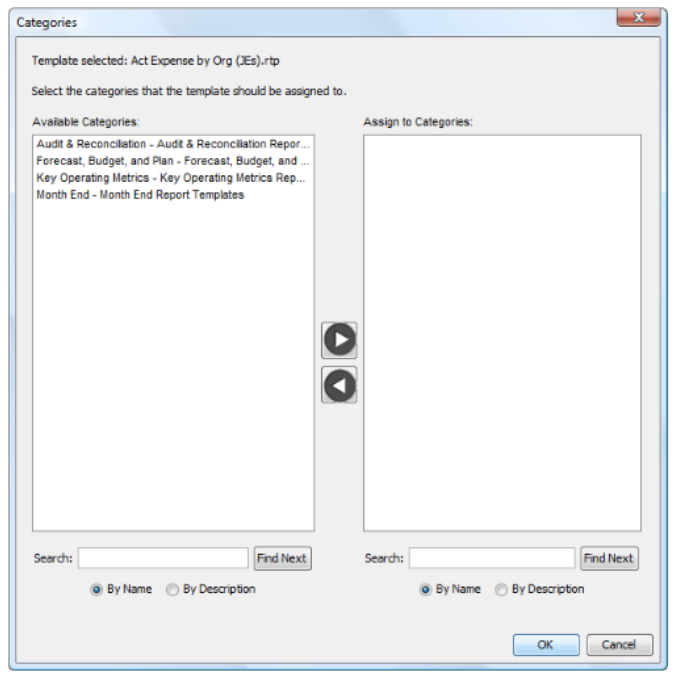 - In the Available Categories field, select the categories to which you want to assign the template, and move them to the Assign to Categories field using the right arrow button. You can select more than one category at a time by holding down the Ctrl key while making your selections.