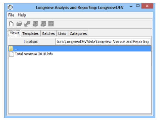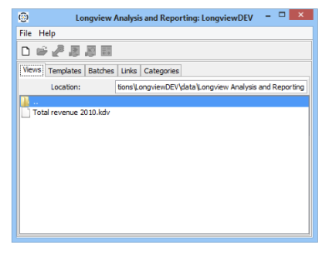 - In the Longview Analysis and Reporting dialog, click the Views tab. A list of all your locally saved DataViews appears.