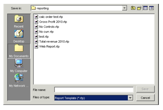 - When you save the file, be sure to save it in report template format. For more information, see Saving a report template - Report Publishers.