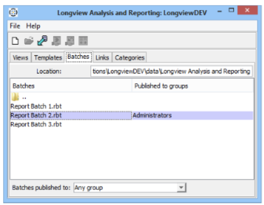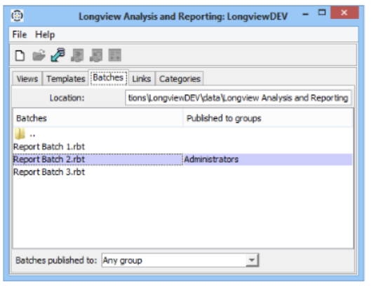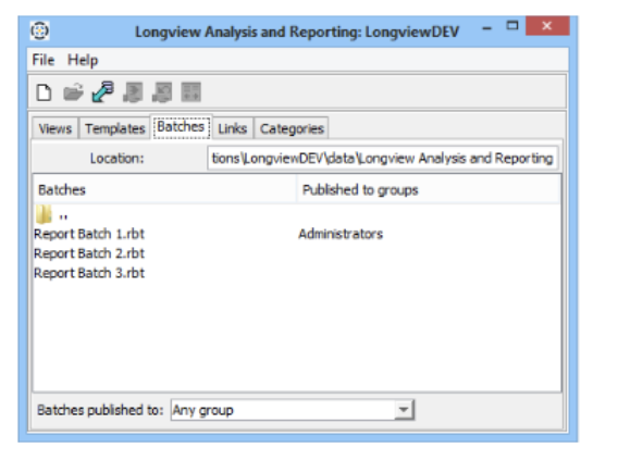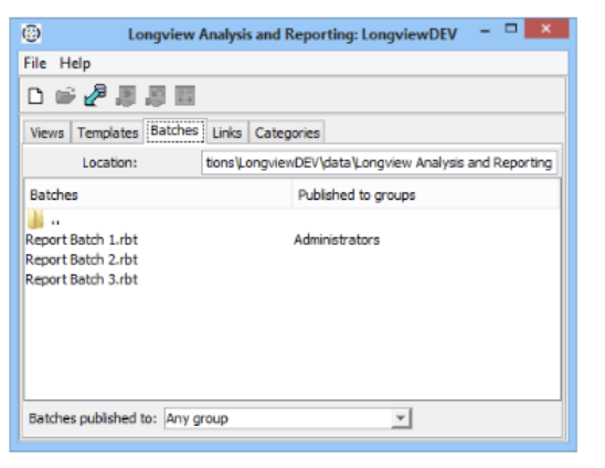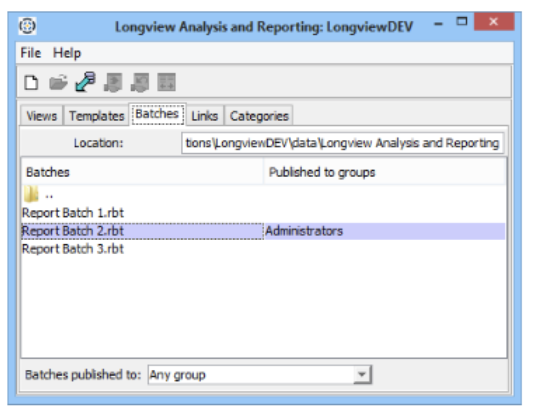 - Open the Longview Analysis and Reporting dialog, click the Batches tab.