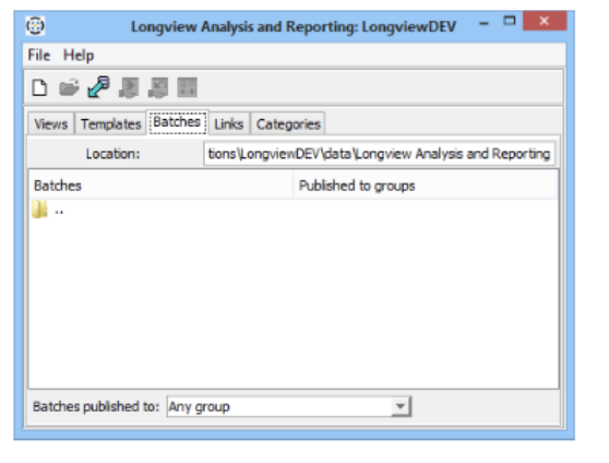 - Open the Longview Analysis and Reporting dialog, and click the Batches tab.