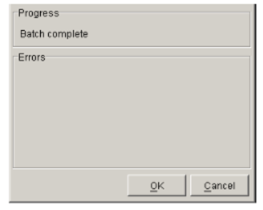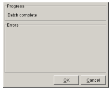 - Specify your print options as required and click OK. The Batch Status dialog appears, listing any errors that may have occurred.