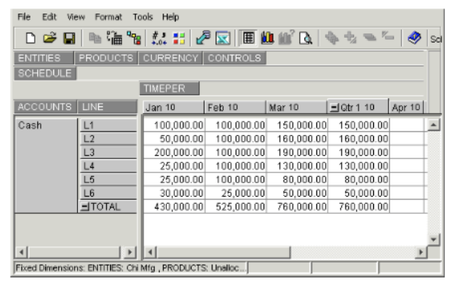 For example, the following illustration shows a simple comparison between base and schedule data for the Cash account.