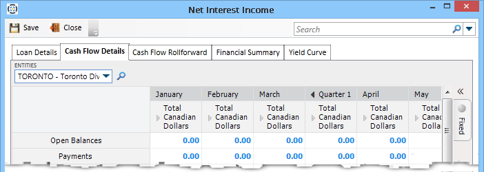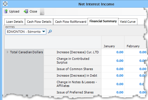 Use this function to insert a blank row or column in a Data Grid. For example, in the grid below, there is a blank row after Month End Balances.