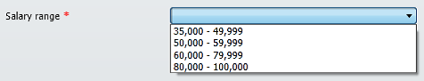 ComboBox "Salary range", sSalary, "1|2|3|4", "Text:35,000 - 49,999|50,000 - 59,999|60,000 - 79,999|80,000 - 100,000", "OnChange:SetSalary.lvpro"