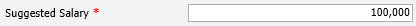NumberBox "Suggested Salary", nSuggestedSalary, "OnChange:ValidateSalary.lvpro", Min:5, Max:7, Decimals:0, Align:RIGHT, ThousandsSeparator:ON, Required:TRUE