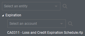 The following graphic shows a symbol selector for the ENTITIES dimension above a folder, and a symbol selector for the ACCOUNTS dimension under a folder.
