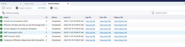 - Longview Tax — The Events Status tool is available from the Tax Provision module in the Administration category of the navigation pane under the Monitoring folder.