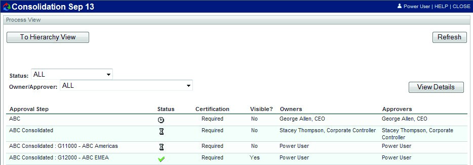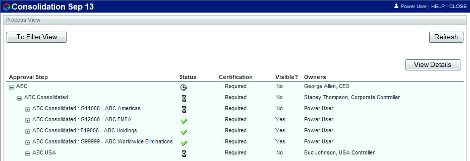 After your System administrator has activated the approval process, the process appears on your Longview home page. When you sign on to your Longview home page, alert messages display, depending on the user role assigned to you, the tasks you must complete, and the process status.
