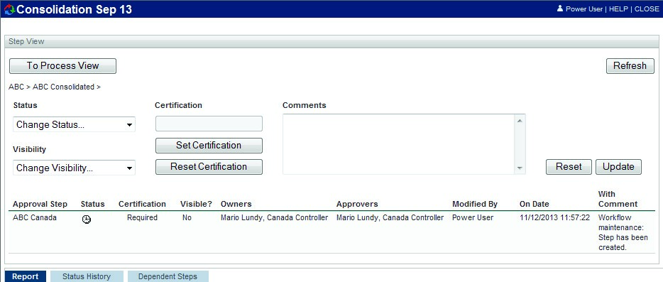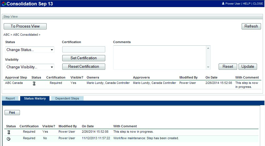 Note: You cannot certify a child step when the status of the parent step is “Submitted for approval” or “Approved”. The status of the parent step must be changed before the child step certification status can be.
