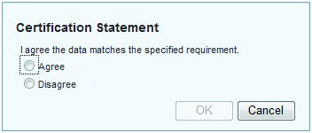 - Select Agree if you agree with the certification statement or select Disagree if you disagree with the certification statement. Click OK or click Cancel to return to the Step View without setting certification.