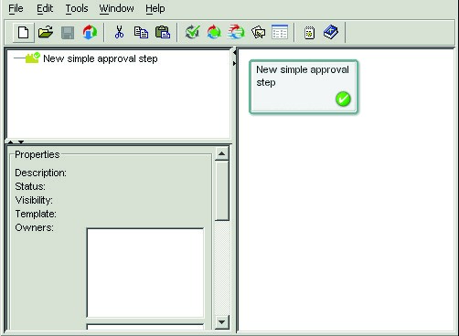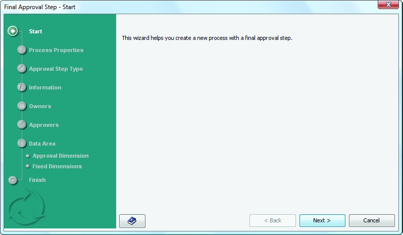 Note: There are two ways to create an approval process — by completing individual dialogs, or by using the wizard. (The other alternative is to click the Blank Approval Process icon or choose File > New > Blank Approval Process.) This documentation demonstrates the wizard method only.