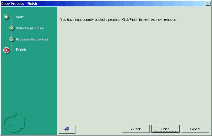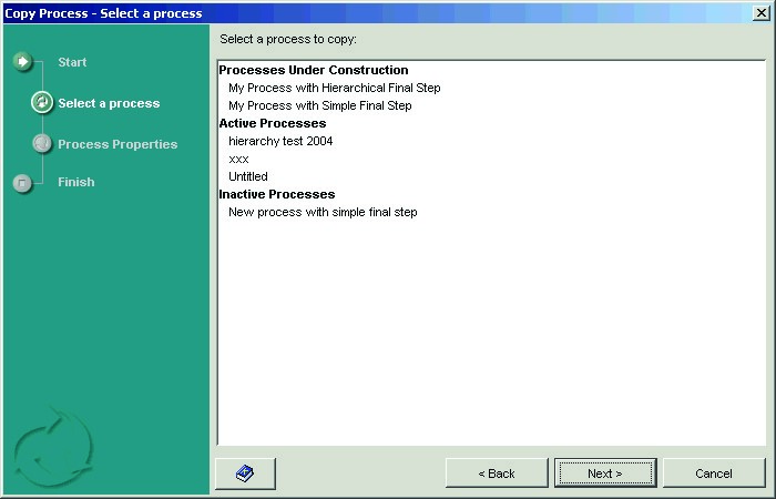 - Select the process you want to copy and click Next. The Process Properties dialog of the wizard appears.