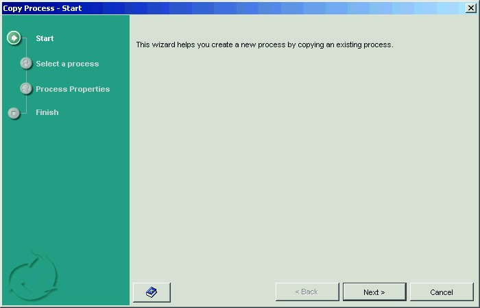 - Click the Copy Process icon. The Start dialog of the wizard appears