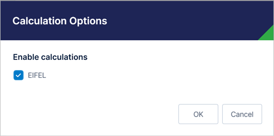 - In the Calculation Options dialog, select EIFEL under Enable calculations.